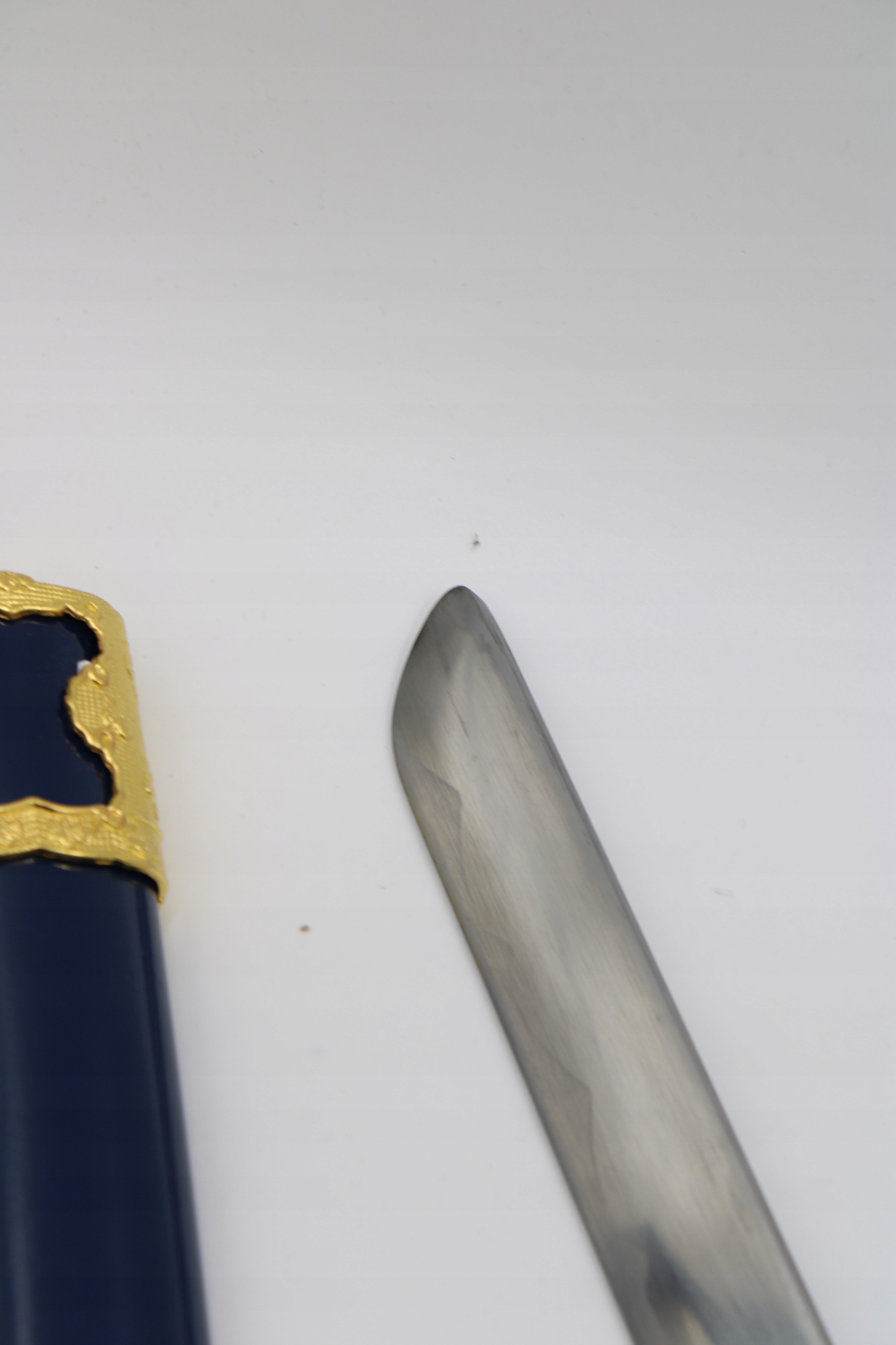 Повреждение: Небольшие царапины на конце поверхности лезвия. Царапина на покрытии крышки меча