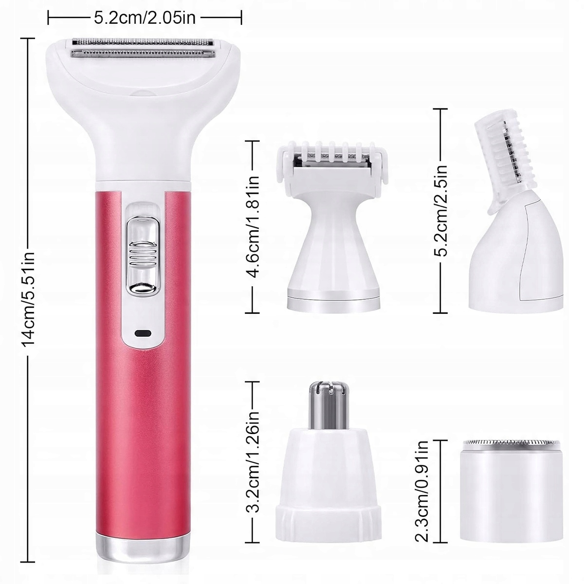✅【ПРЕЗНАЧЕН ДЛЯ ЖЕНЩИН】Набор для электробритвы 5-в-1 включает в себя 5 многофункциональных головок, которые могут мгновенно удалять волосы с лица, рук, ног, линии бикини, носа, бровей, губ и т. д., делая кожу более гладкой.