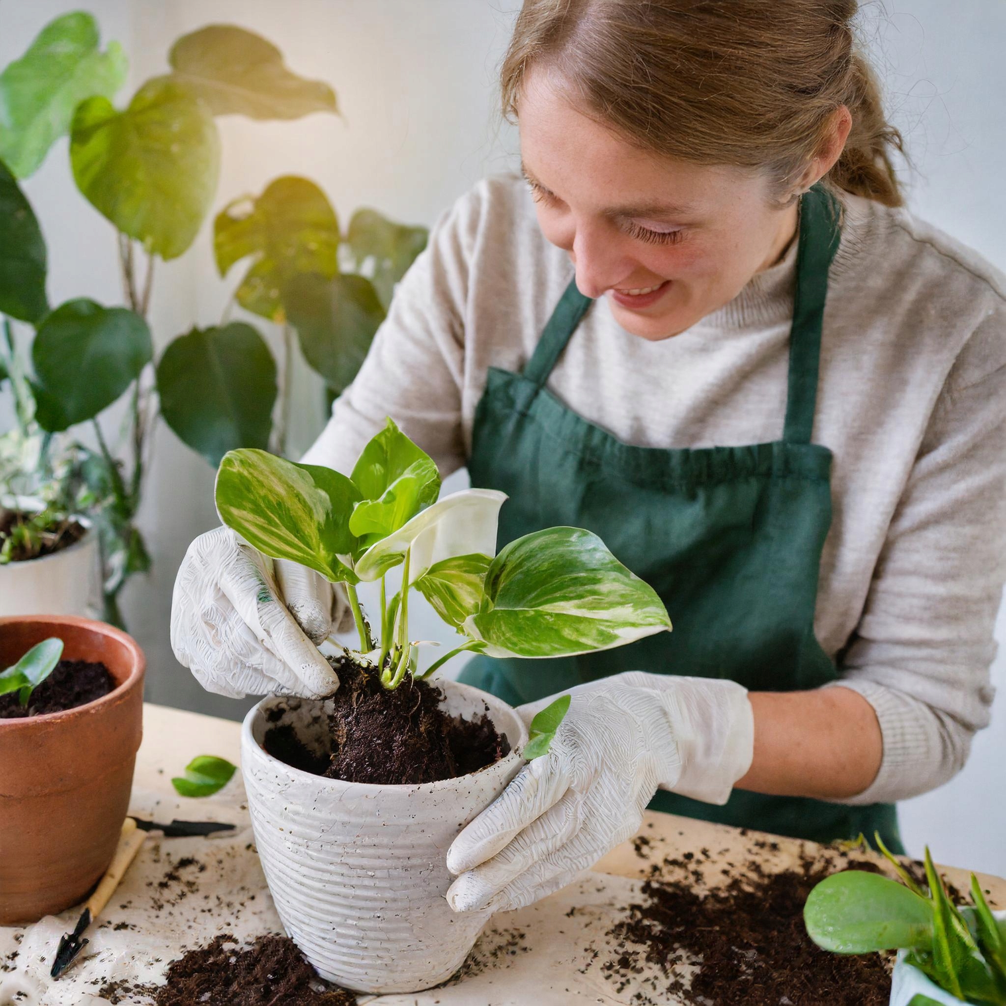 - Тип субстрата: Эпипремнум является представителем семейства Эпипремнум, поэтому его требования к субстрат будет похож на субстрат для монстеры или филодендрона. Прежде всего, основание должно быть высокопроницаемым. Целесообразно будет использовать смесь универсального грунта с керамзитом и перлитом, а также смесь керамзитового грунта для дренажа на дне. Рекомендуемые пропорции — 50% грунта, 25% щепы и 25% перлита, консервативно можно добавить активированный уголь, который предотвратит образование плесени. Пересаживаем растение в горшок большего размера в среднем раз в 3 сезона.