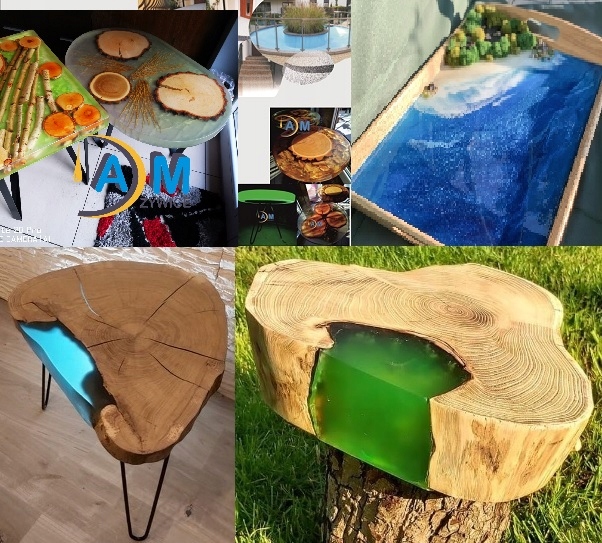 - столешница и украшения из смолы