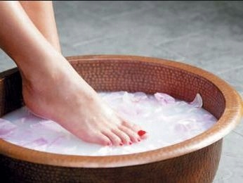 Добавьте 1/3 стакана английской соли в миску с теплой водой. Ноги следует замочить на 20 – 30 минут.
