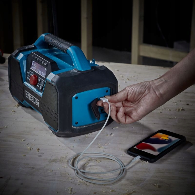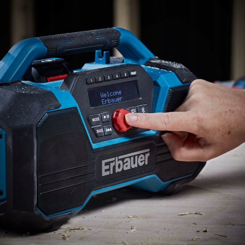 Является частью одинарной аккумуляторной системы Erbauer EXT 18 В. Обеспечивает мощность и гибкость, необходимые для выполнения работы. Надежный, долговечный, простая конструкция. Беспроводные инструменты, использующие только один литий-ионный аккумулятор для эффективной и результативной работы. Bluetooth. Слушайте музыку через Bluetooth на расстоянии до 30 метров. Функция программирования радиостанций Удобный поиск радиостанций Автоматический поиск радиостанций DAB и прием FM-радио, функция зарядки через USB, дополнительный разъем для проводного воспроизведения музыки с другого устройства, шнур питания переменного тока в комплекте