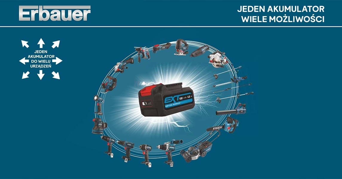 - совместим со всеми зарядными устройствами Erbauer EXT