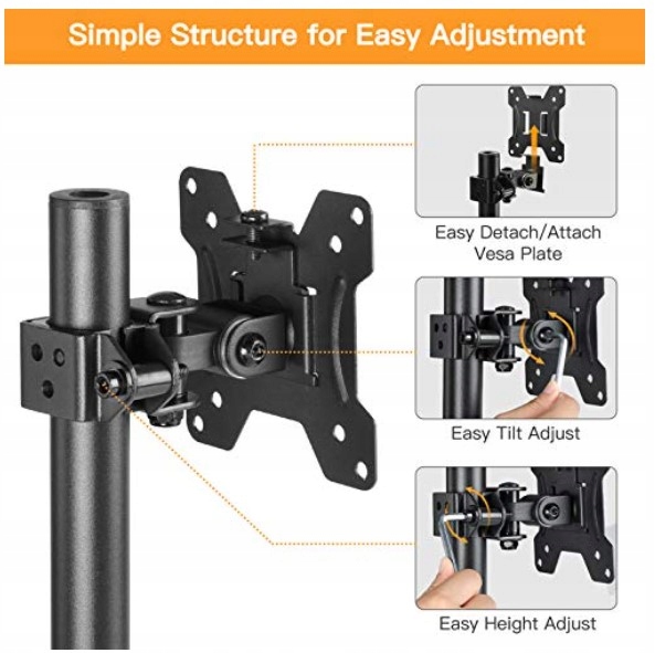 Просто нажмите на экран рычага монитора, и его легко отрегулировать под многими углами (вращение ± 90 °, наклон ± 45 °, вращение на 360 °), чтобы получить наиболее удобное рабочее место. Ослабьте винт и получите любую высоту вдоль главного пояса 42,5 см. Вышеупомянутые много регулируемых методов могут эффективно облегчить давление на шею, спину и глаза, вызванные длительным рабочим временем