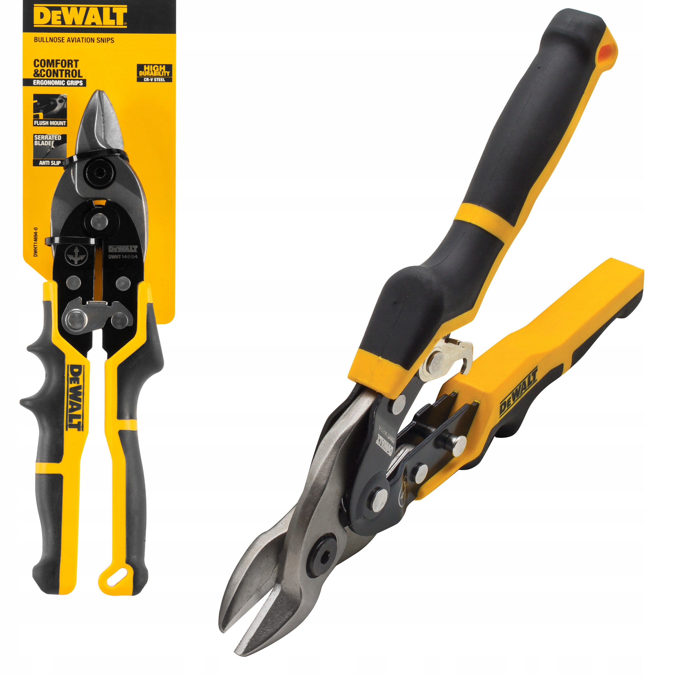 Dewalt® Bullnose Aviation Snip Snip Ncissors были разработаны с уменьшенным пролетом ручки, что обеспечивает меньшее мышечное усилие при работе с усердными материалами. Этот инструмент традиционно используется для разрезания листов толщиной от 18 до 22 мм. Плоское оборудование позволяет гладко. Инструмент имеет эргономическую ручку против SLIP и внешнюю защелку, облегчающую использование