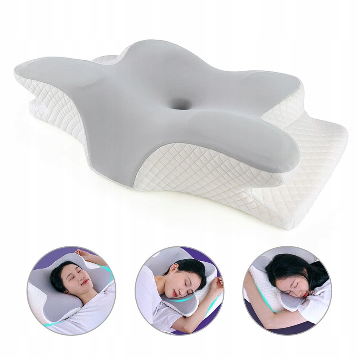 🌟🌟🌟Подушка из пены с эффектом памяти Подушка-бабочка, удобная подушка для головы, подушка для поддержки шеи, эргономичная подушка для сна на боку (белая и серая)