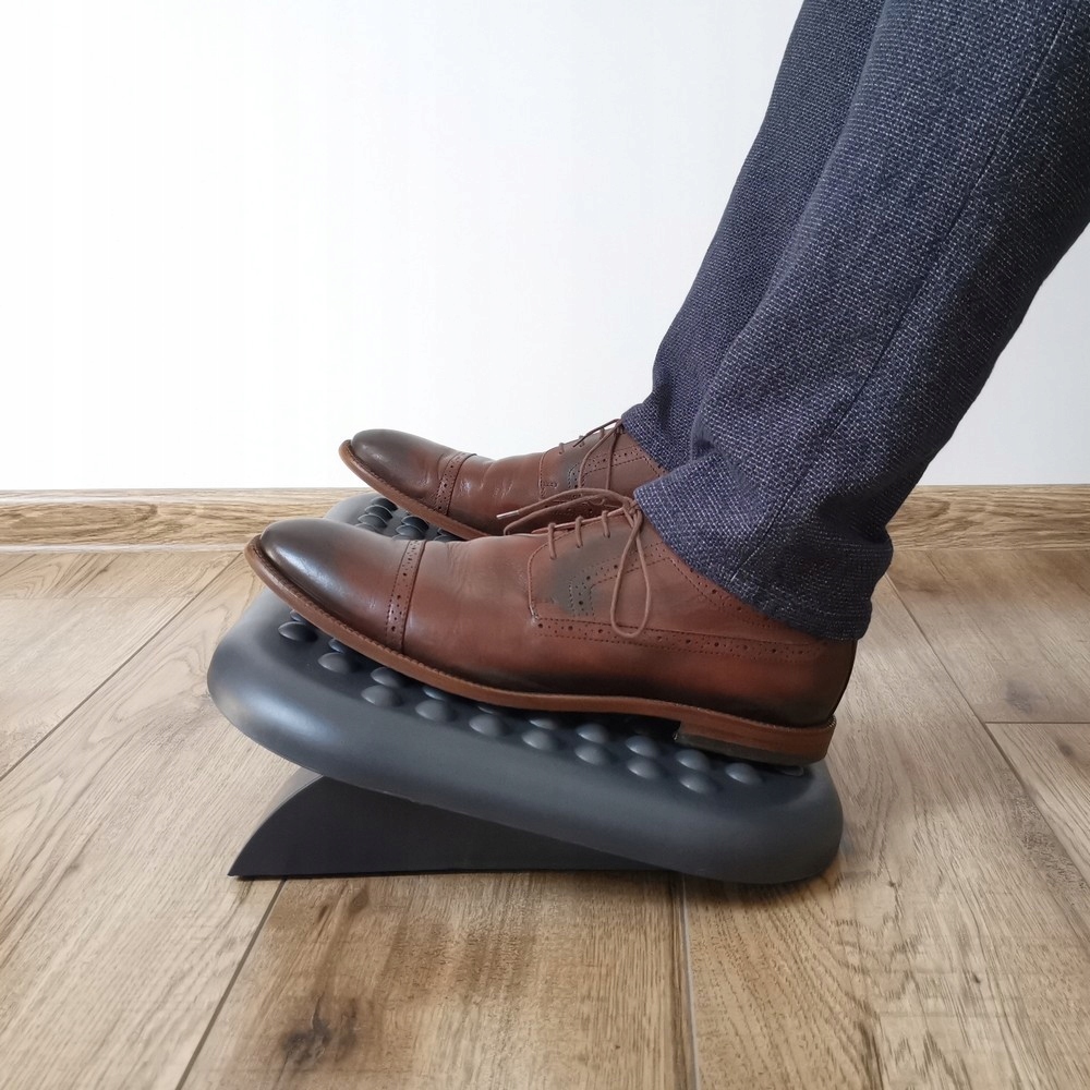 Эргономичная подставка для ног с нескользящими выступами, которые дополнительно массируют ноги. Это помогает сохранять правильное положение при работе за столом и улучшает кровообращение благодаря поднятым ногам. Имеет плавную регулировку угла наклона0 - 15°.