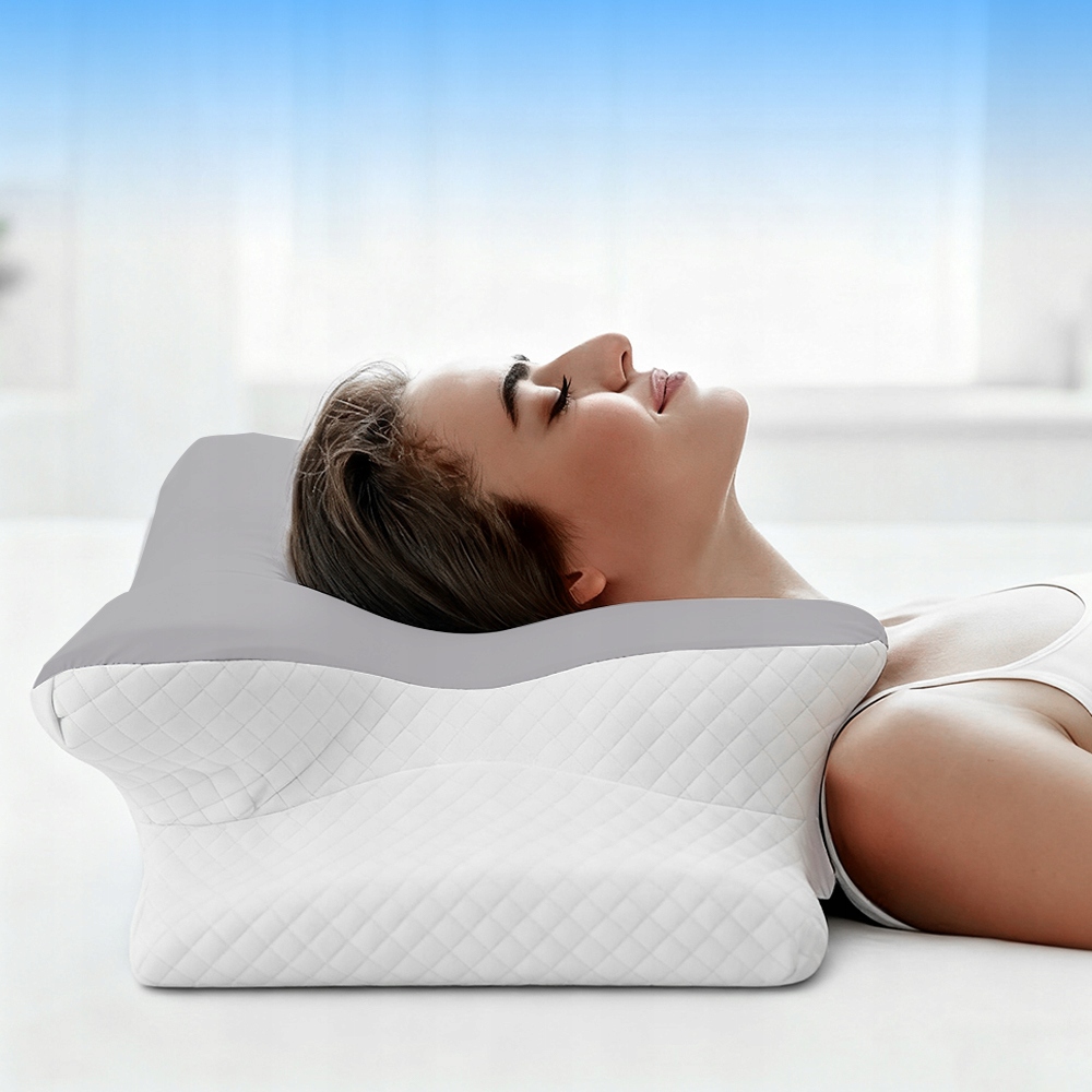Эта подушка из пены с эффектом памяти улучшает качество сна и снимает боль. Подушка адаптируется к плечам и шее, обеспечивая комфорт и облегчение, а также зональную поддержку шеи.