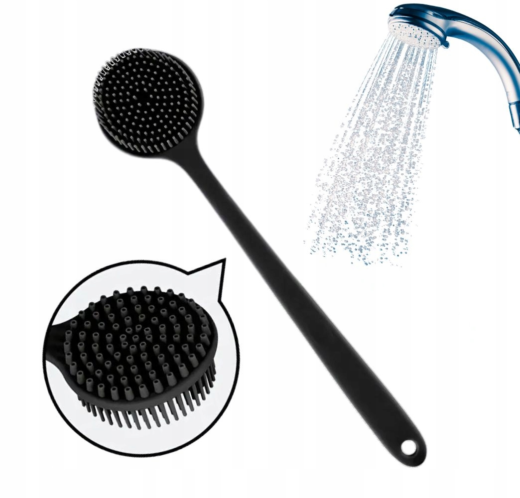Специально профилированная головка и длинная ручка позволяют легко дотянуться до всей спины, не сгибаясь. Силиконовые выступы эффективно удаляют загрязнения и омертвевшую кожу. Кисть не раздражает кожу – подходит для повседневного использования. Ваша спина будет чистой, свежей и ухоженной.