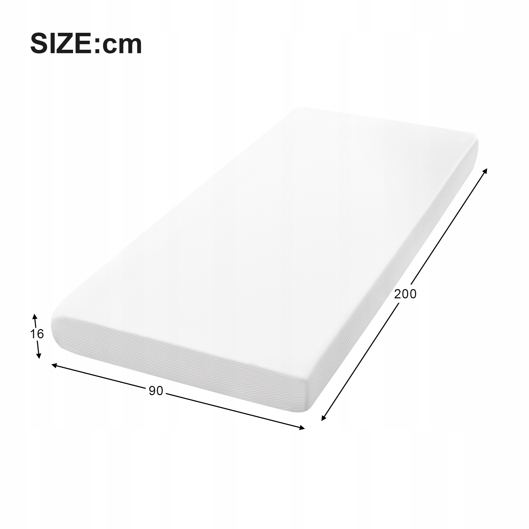 - Общий размер: 200x90x16см