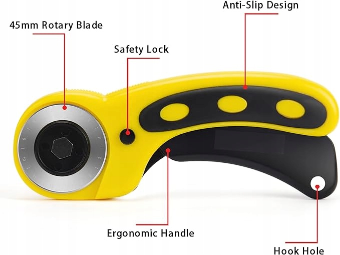 - Превосходная функция безопасности: лезвие автоматически убирается, когда вы отпускаете эту ручку. Этот ротационный нож имеет кнопку блокировки, которую можно использовать для закрытия или открытия. Кнопка легко блокирует лезвие, когда оно не используется, а также может зафиксировать лезвие на месте, что позволяет легко резать.