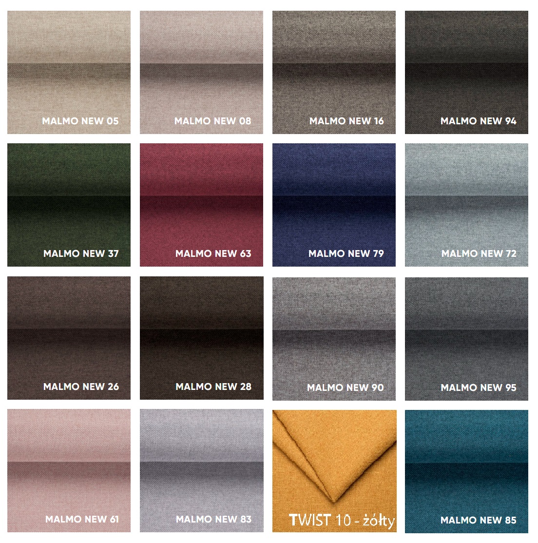Ткань MALMO изготовлена из 100% полиэстера. Материал относится к группе плетенок, которые известны своей долговечностью. Ткань MALMO прошла испытание на истирание в размере 55 000 циклов. Что придает ему высокую устойчивость к истиранию во время сидения. Ткань MALMO также устойчива к скатываниям и обесцвечиванию под воздействием искусственного света. Таким образом, мебель с этим обивочным материалом дольше сохранит хороший внешний вид.
