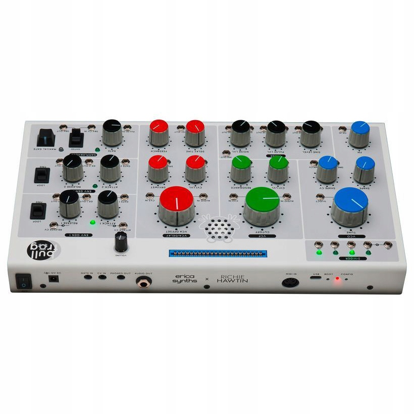 - Фильтр нижних частот (-24 дБ/окт.) с элементами управления срезом, резонансом и входом CV с аттенюатором.