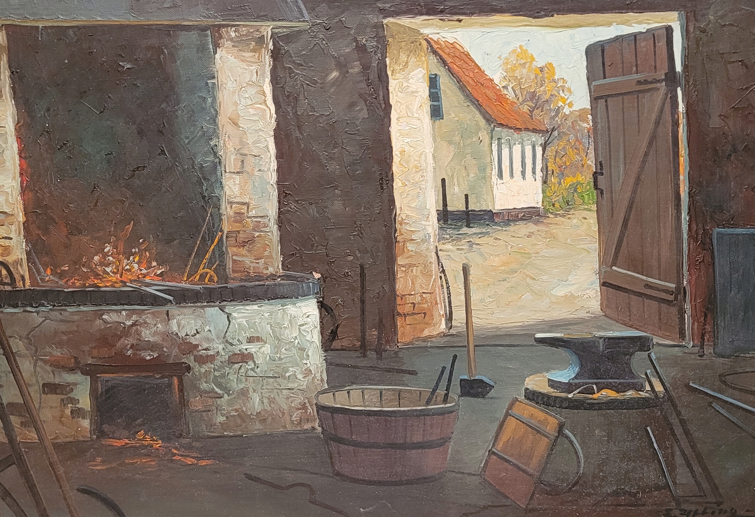 Эрик Иттинг (1921 - ...) - «Старая кузня», красивая нефтяная картина.
