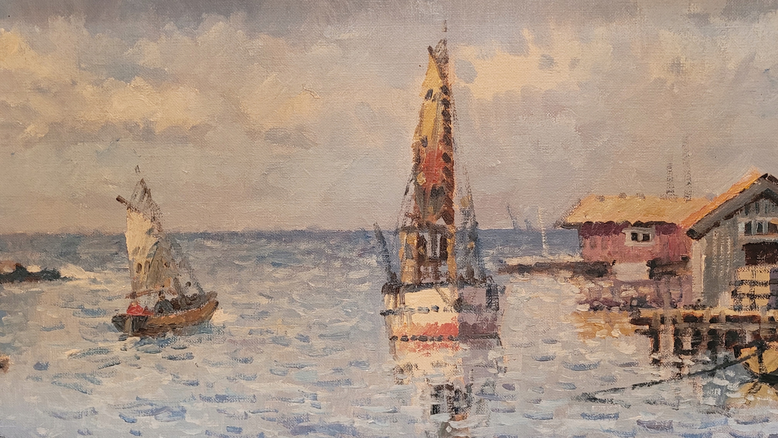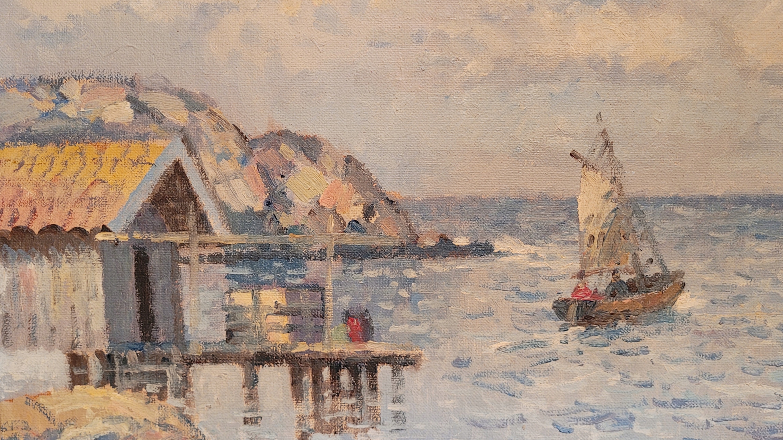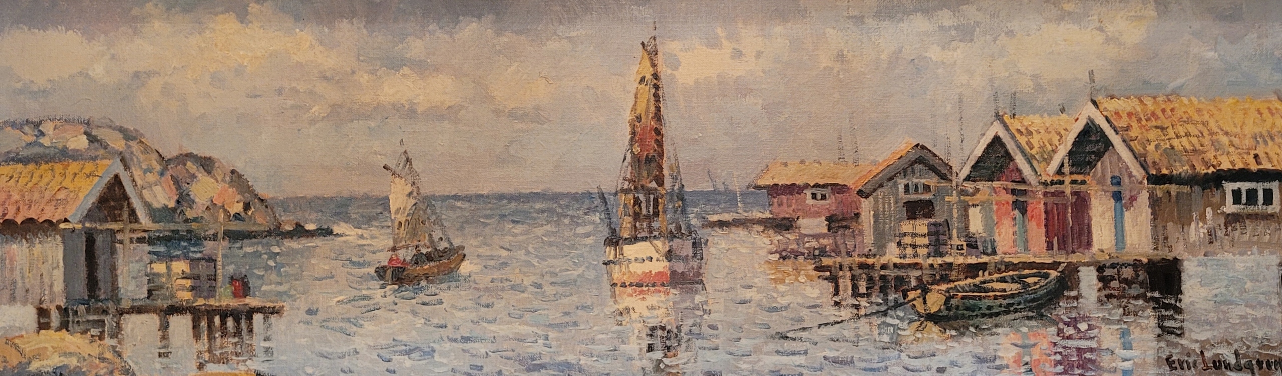 Эрик ЛУНДГРЕН (1906–1971) — «РЫБАЛКА ГАВАНЬ», прекрасная картина маслом.