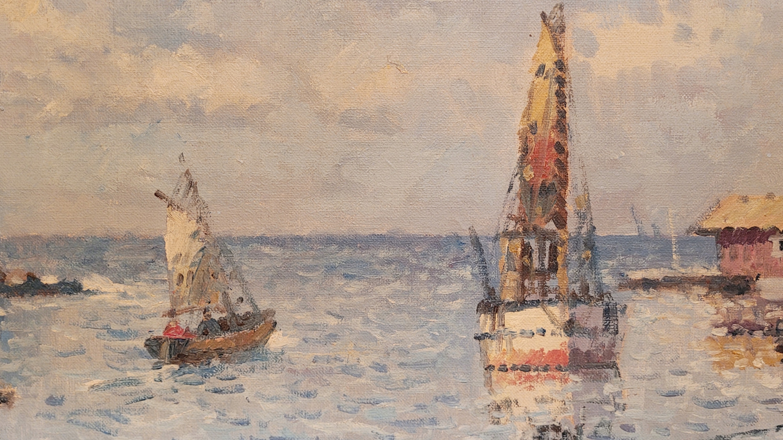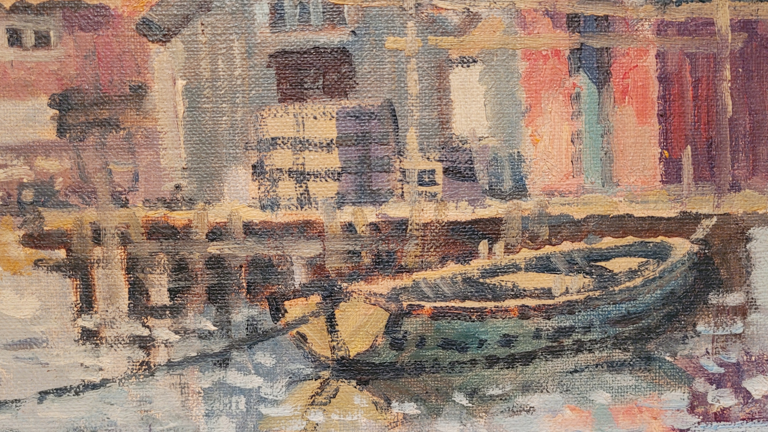 Предмет продажи - красивая, старинная картина маслом " РЫБНАЯ ГАВАНЬ".