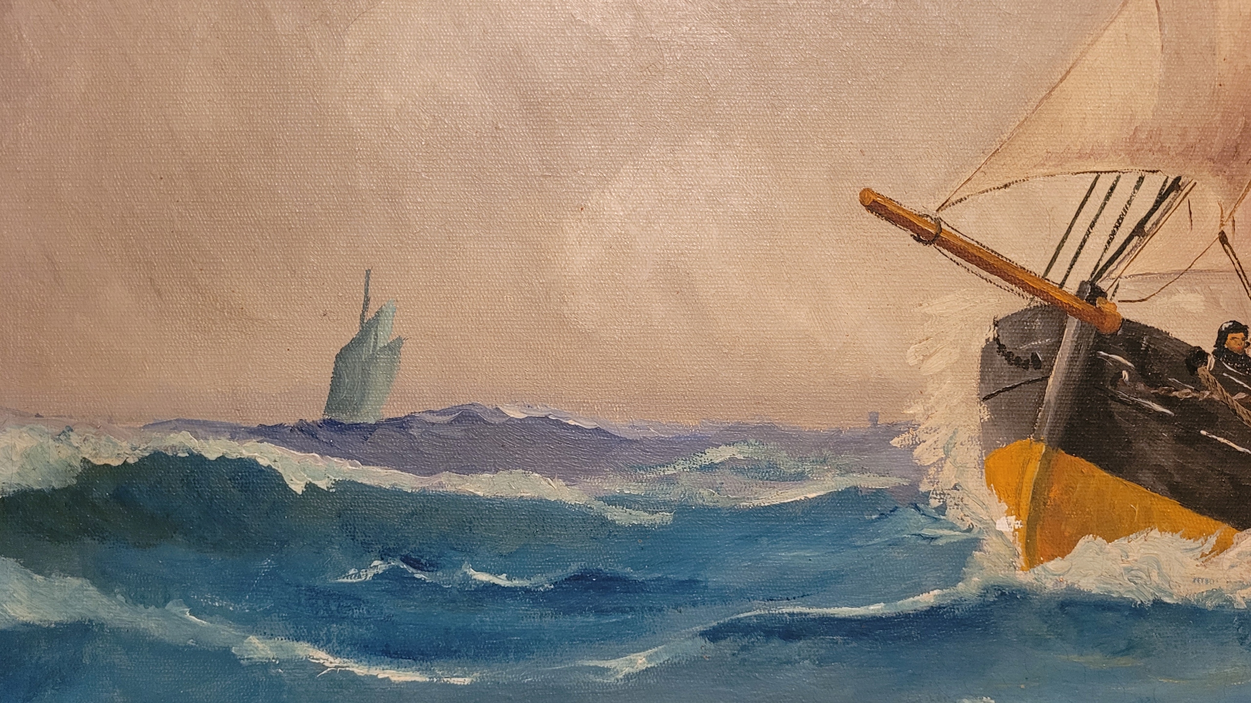 Предмет продажи — красивая старинная картина маслом «ПАРУСНАЯ ЛОДКА».
