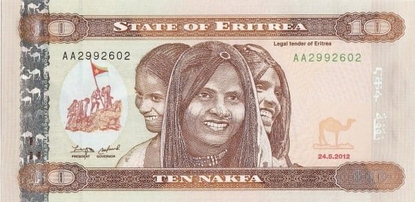 Состояние I unc Номинальная стоимость 10 накфа Материал бумага Размер 140 x 70 мм Каталог P-12a Серии разные Год 2012