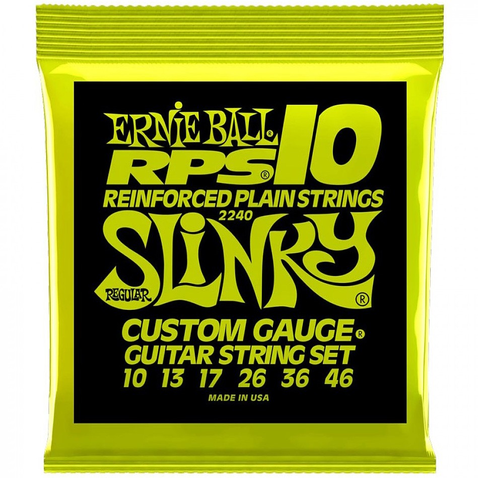 Струны для электрогитары Ernie Ball 2240 RPS (Reinforced Plain Strings) представляют собой усиленную версию Slinky. Пружина из бронзовой проволоки плотно намотана на крепежные витки конца с наконечником. Это предотвращает проскальзывание и разрыв струн на конце наконечника, где это случается чаще всего.