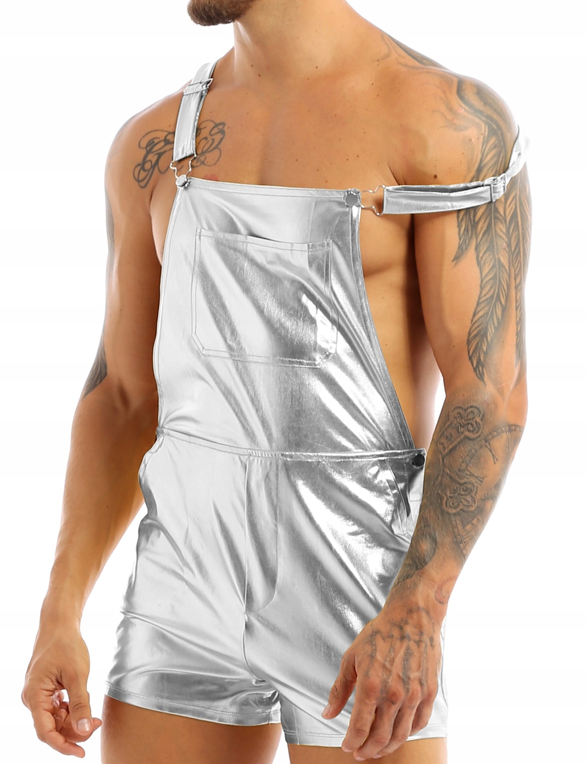 Эротическое мужское нижнее белье Серебряное комбинезон xxl