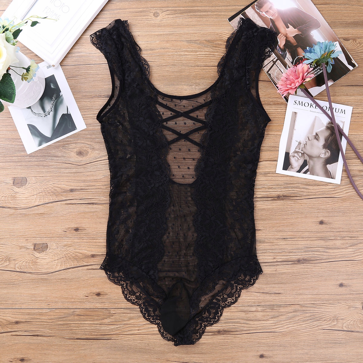 Эротическое мужское тело нижнего белья, сделанное из верхнего кружева XL