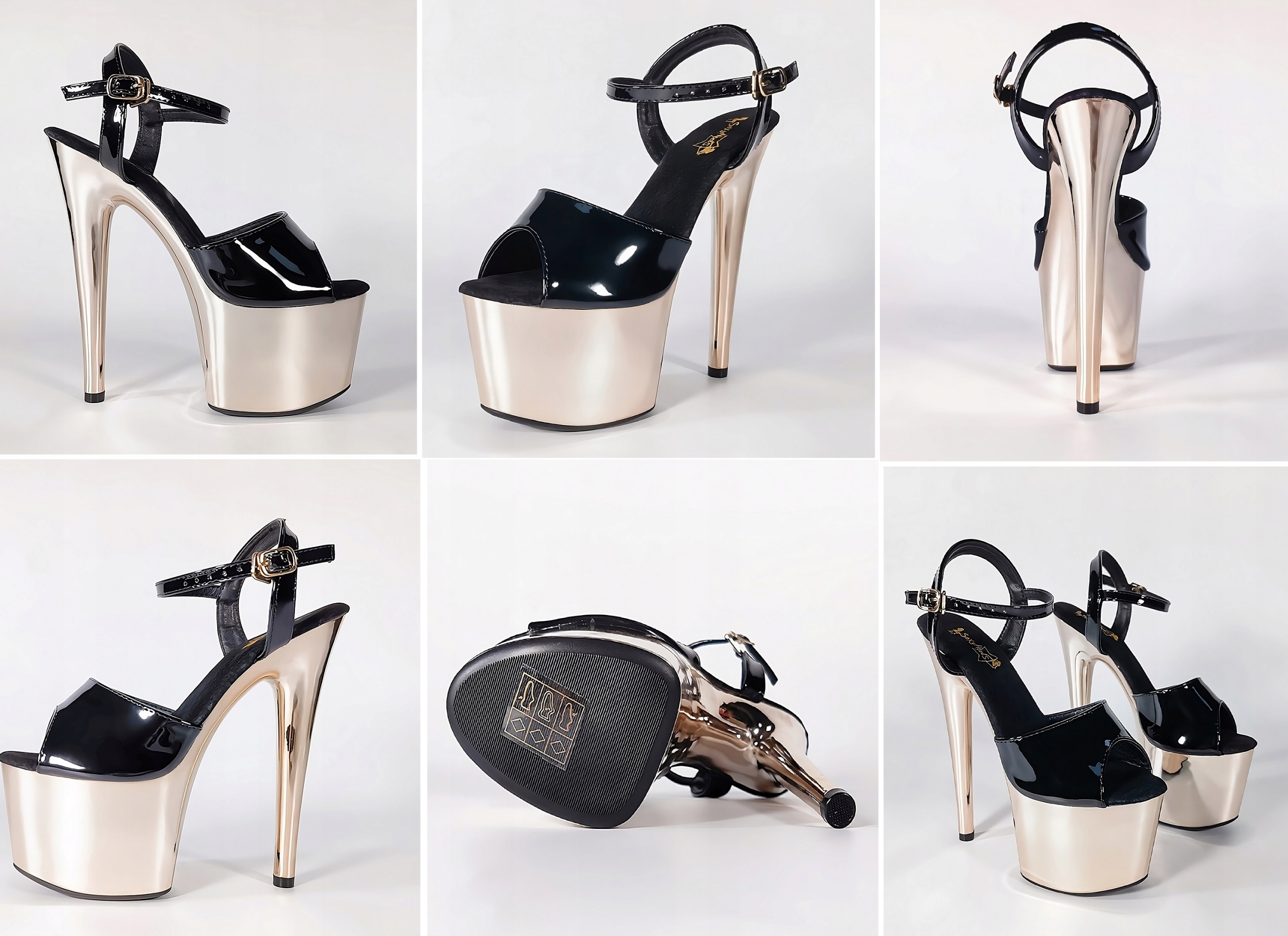 ЭРОТИЧЕСКИЕ ТУФЛИ НА ВЫСОКИХ КАБЛУКАХ ДЛЯ Танца на пилоне Черное Золото НА ПЛАТФОРМЕ 17 см, размер 41