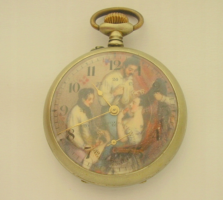 EROTYKA zegarek kieszonkowy EROTIC motiv pocket watch antique 1925 r antyk