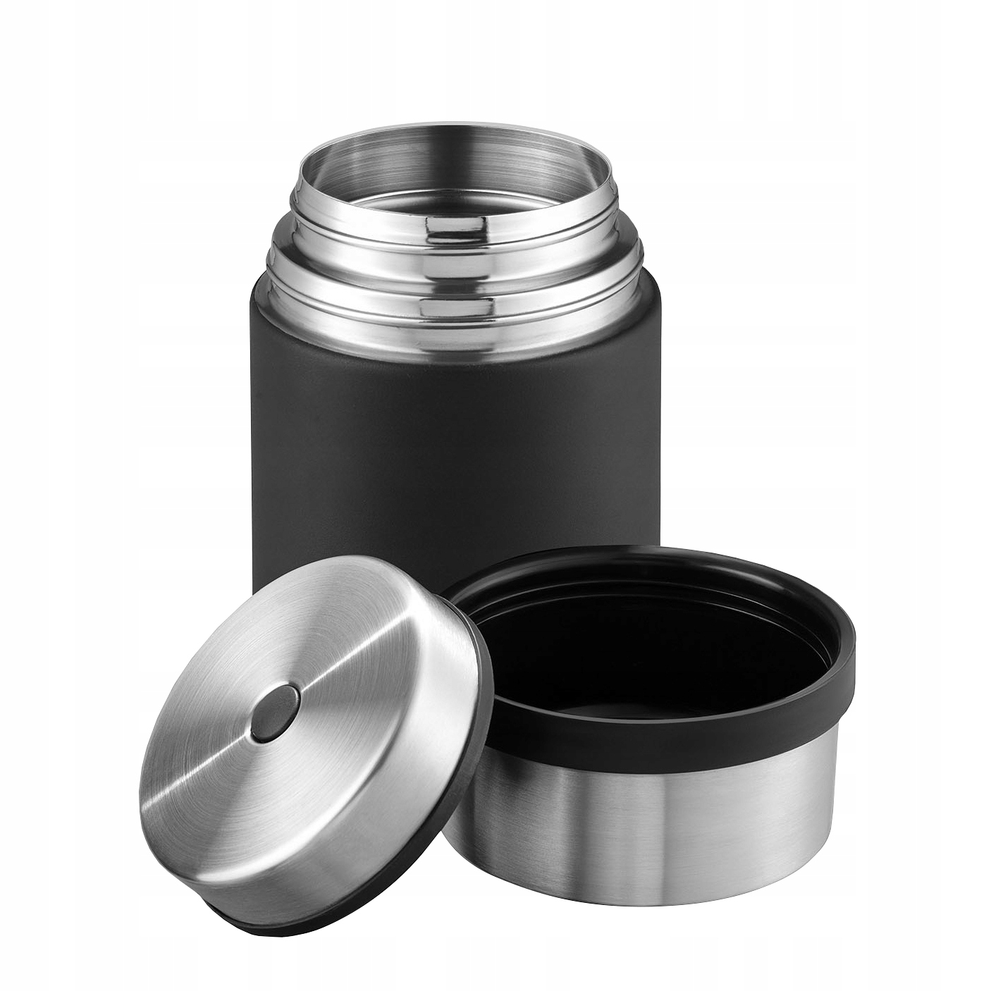 Термос комплектуется крышкой и колпачком. Первый имеет специальную кнопку, своего рода предохранительный клапан, позволяющий выровнять давление внутри емкости. Это облегчит открытие термоса. Использование кнопки также исключает риск ожога паром, который может выйти изнутри. Крышка не только дополнительно герметизирует термос, но и может использоваться как миска, так что о дополнительной посуде не придется вспоминать.