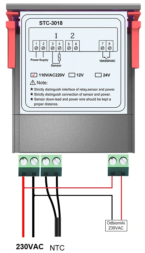 Устройство имеет реле с контактом без потенциала с максимальным током 10A , благодаря которому он может переключать приемники с различными напряжениями 12/24/48/230 В и т. Д.