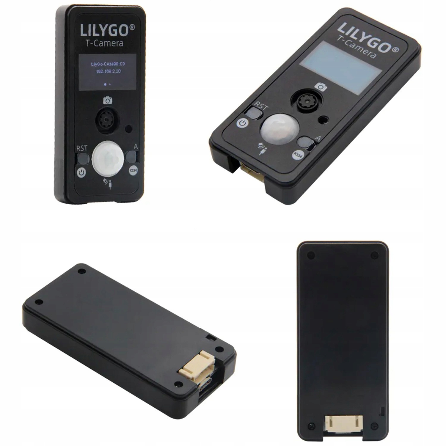 Модуль LilyGO T-Camera S3 в корпусе — построен на базе микроконтроллера ESP32-S3 последнего поколения с камерой, OLED дисплеем диагональю 0,96" и Разрешение 128x64, микрофон и PIR датчик движения ESP обеспечат нам беспроводную связь через WiFi и Bluetooth 5.0. Модуль оснащен. разъем USB-C, благодаря которому преобразователь UART мы можем как запитать, так и запрограммировать плату. Модуль также может питаться от Li-Po аккумулятора 3,7 В через имеющийся 2-контактный разъем JST-PH 1,25 мм (вилка входит в комплект). в комплекте). Дополнительно на плате имеется 5-контактный разъем и 2 кнопки.