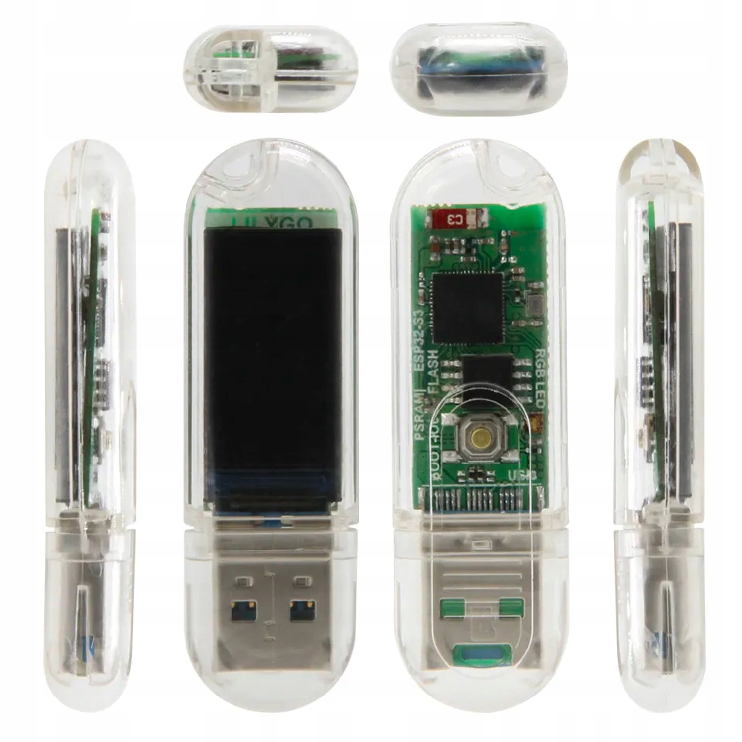 Модуль T-Dongle от LilyGo основан на микроконтроллере ESP32-S3 с возможностью беспроводного подключения Wi-Fi и Bluetooth и встроенным цветным ЖК-дисплеем с диагональю 0,96 дюйма. Ключ также имеет слот для карты microSD TF. Все это было заключено в прозрачный корпус в форме флешки. Программирование можно выполнять с использованием таких платформ, как ArduinoIDE, PlatformIO или Micropython, подключив его непосредственно к USB-порту компьютера. На обратной стороне платы есть кнопка — нажимайте ее аккуратно, чтобы не треснуть дисплей. Встроенная керамическая антенна с высокой чувствительностью увеличивает дальность беспроводной передачи.