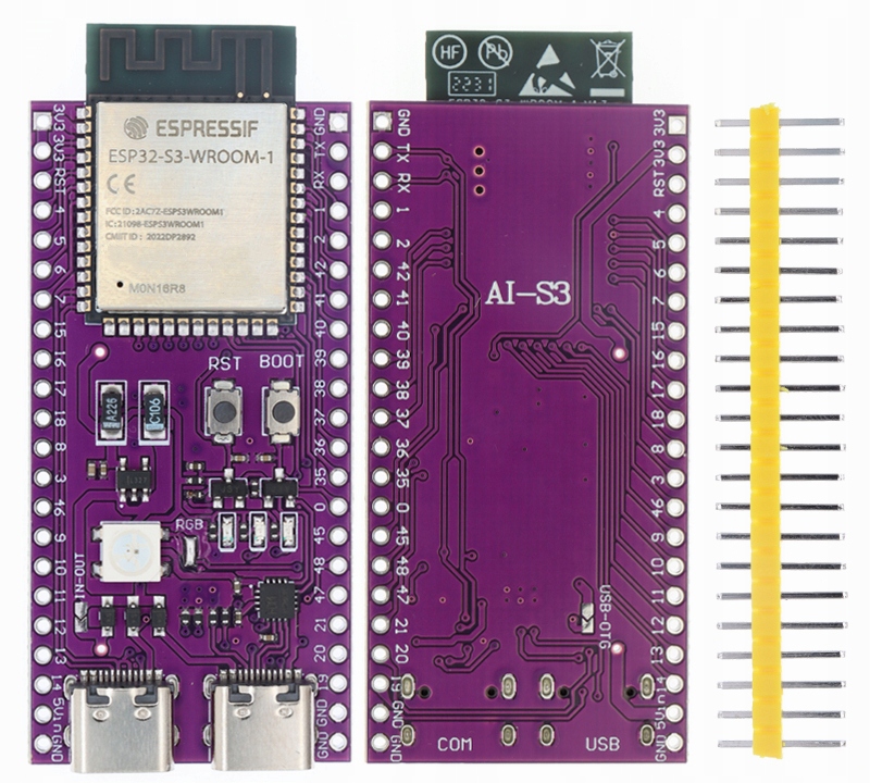 ESP32-S3-WROOM-1-N16R8, который оснащен двухъядерным 32-битным процессором Xtensa LX7 с операционной частота 240 МГц, встроенная SRAM 512 КБ (TCM) и 8 МБ PSRAM, флэш-память 16 МБ. Совместим с распиновкой платы разработки ESP32-S3-DevKitC-1, более удобен в использовании и расширении различных периферийных модулей.