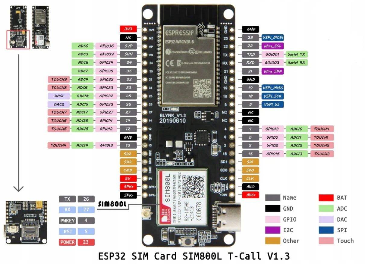 ESP32 SIM800L WiFi TTGO T-CALL LilyGO GSM bluetoot