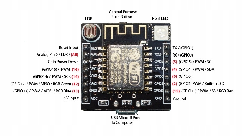 ESP8266 (ESP-12F) Witty Mini Nodemcu Clone является полноценным продуктом не только для профессионалов. Наше предложение включает в себя в основном электронные модули и компоненты. Их правильное использование требует базовых знаний в области электроники, а также часто также навыки программирования.