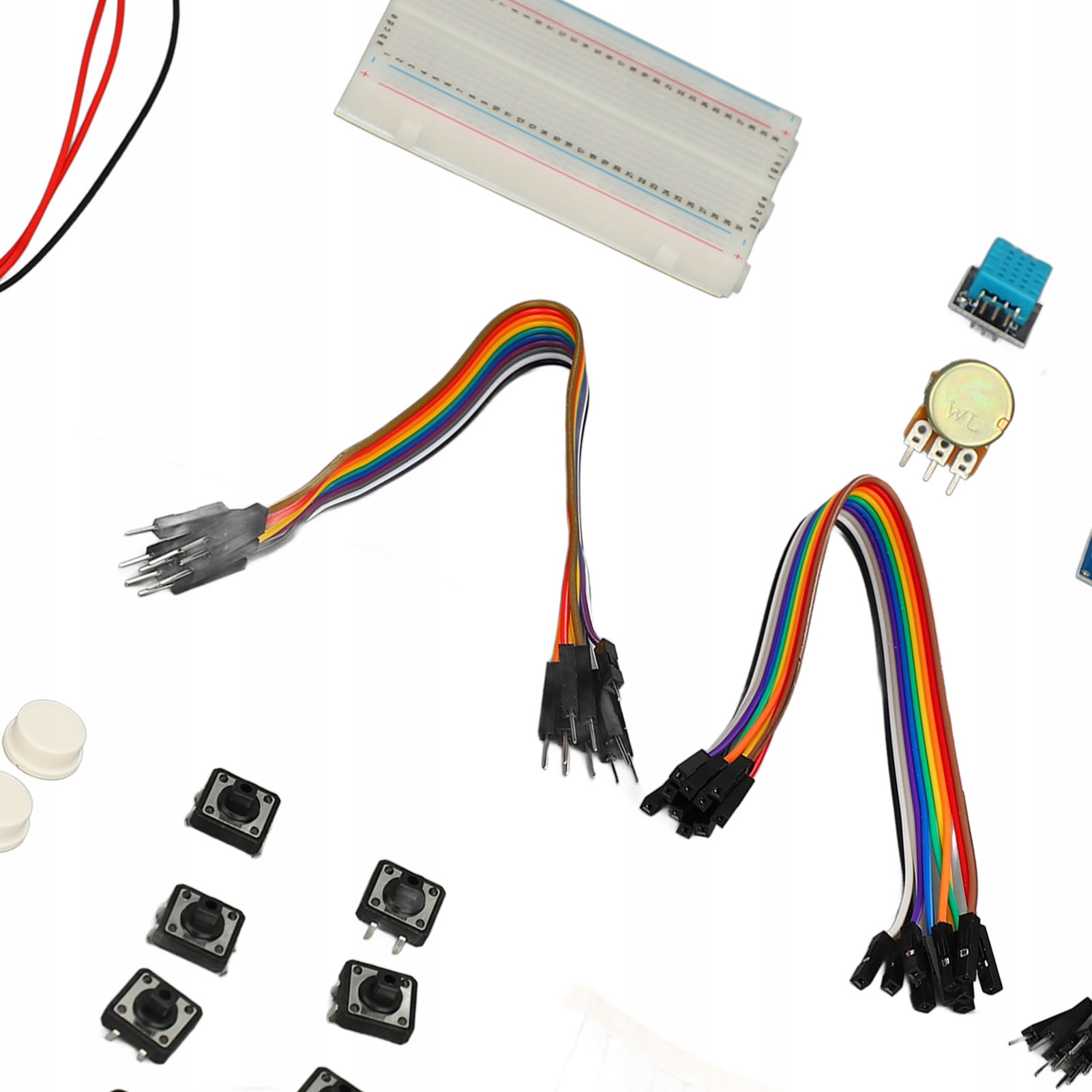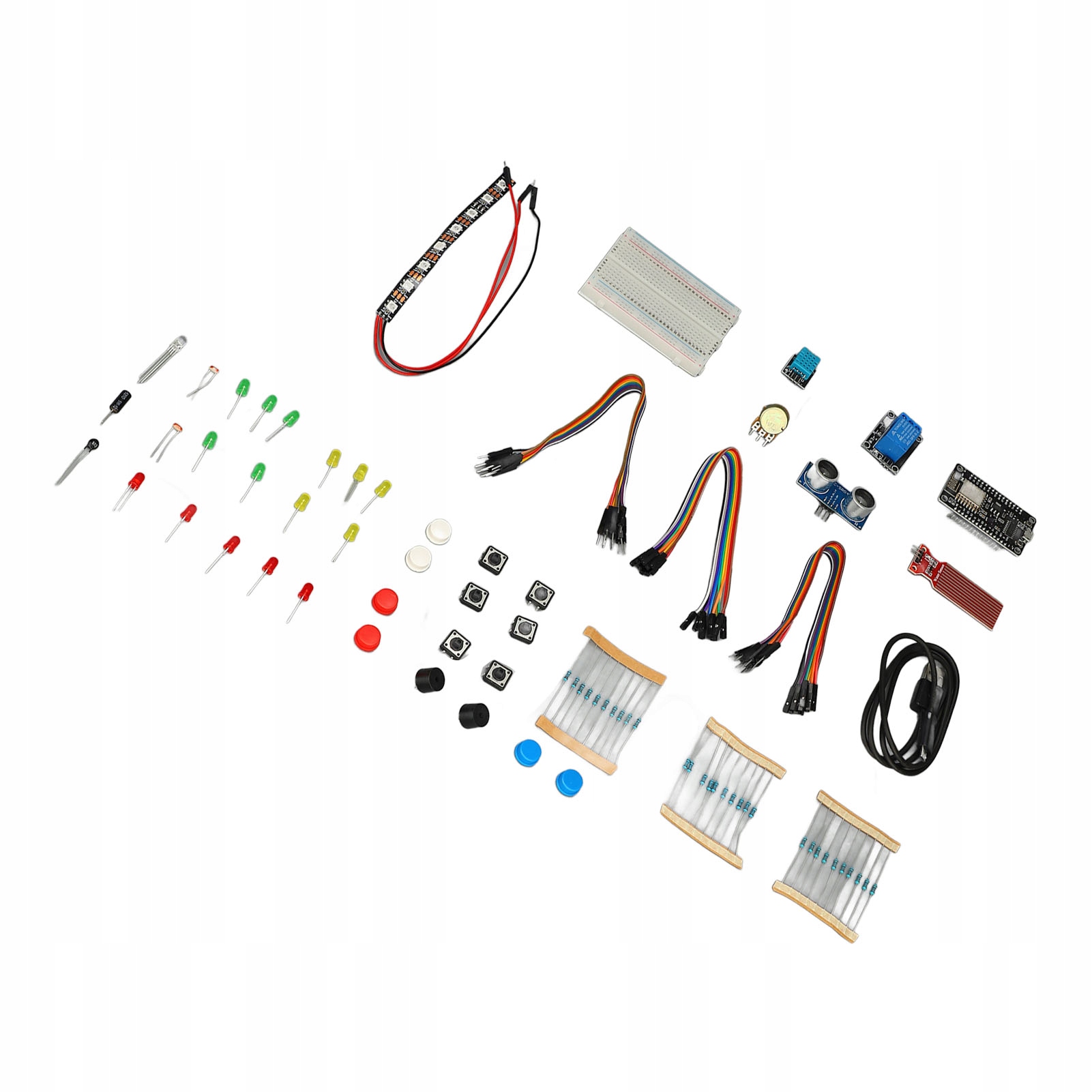Функция: 1. [ESP8266 STERTER IOT SET] Этот набор содержит вопрос ESP8266 для разработки и программное обеспечение для реплицированной схемы, включая такие компоненты, как резисторы, светодиоды, кнопки и потенциометр.