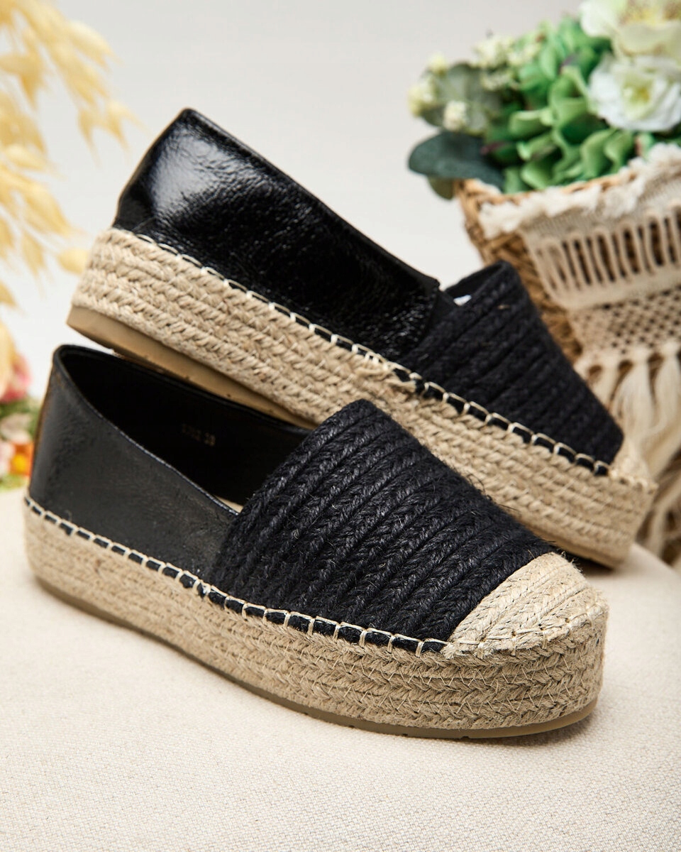 Уникальные женские эспадрильи из комбинации ткани и экокожи. Плоская подошва, декорированная джутовой верёвкой, обеспечивает комфорт. Модель слипона. Прекрасное дополнение к летнему образу!