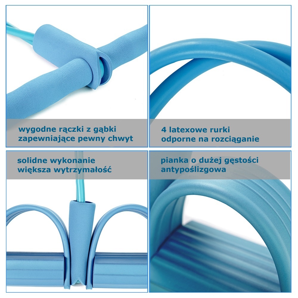 Усовершенствованная версия эспандера включает в себя до 4-х резиновых трубок из натурального латекса, устойчивого к растяжению.