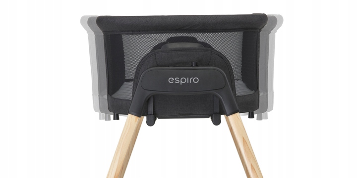 Функция подставки может быть заблокирована в любой момент благодаря удобной и легкодоступной кнопке. Espiro Tully — это люлька, кроватка и независимая гондола, которую можно разместить где угодно.