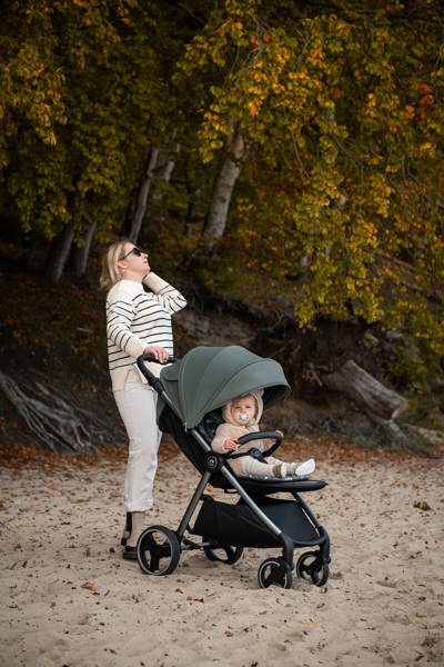 благодаря тому факту, что он был оснащен емкость для покупок. Волновая тележка феноменально адаптируется к росту хозяина, благодаря легкой направлении с придлинной, завернутой в элегантный экоскр. Удобная система регулировки спинки, которая позволяет легко переходить из положения сидения. Коляска имеет просторную стенд, которая может быть увеличена до размера XL, благодаря которой она защищает от солнца и ветра. Стоит добавить, что стенд водонепроницаемый и изготовлен из материала с UPF50+.