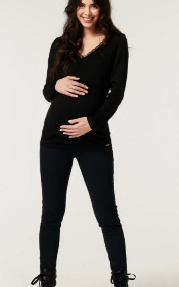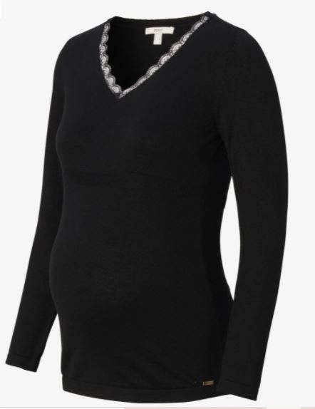 ESPRIT MATERNITY SWETER Z KORONKĄ CZARNY XS 1BEC