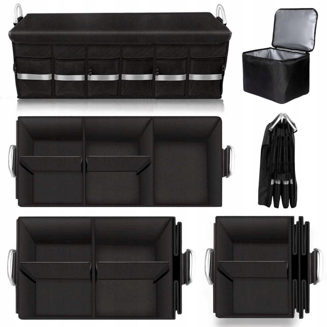 Essen – вместительный автомобильный органайзер, который помогает поддерживать порядок в багажнике. Его можно адаптировать под ваши нужды, благодаря продуманной конструкции, позволяющей разделить его на части или уменьшить на 2/3. Изготовленный из материалов высочайшего качества, таких как OXFORD 1680D, Essen прочен и устойчив к повреждениям. Сумка имеет алюминиевые ручки, прочную строчку и нескользящие ножки снизу, предотвращающие скольжение сумки в багажнике. Внутренние и внешние карманы обеспечивают дополнительное пространство, а сумка оснащена светоотражателями для повышения безопасности. В сложенном виде Essen занимает мало места и оснащен дополнительной термосумкой объемом 25 литров. Это вместительный и прочный автомобильный органайзер, облегчающий поддержание порядка в автомобиле.