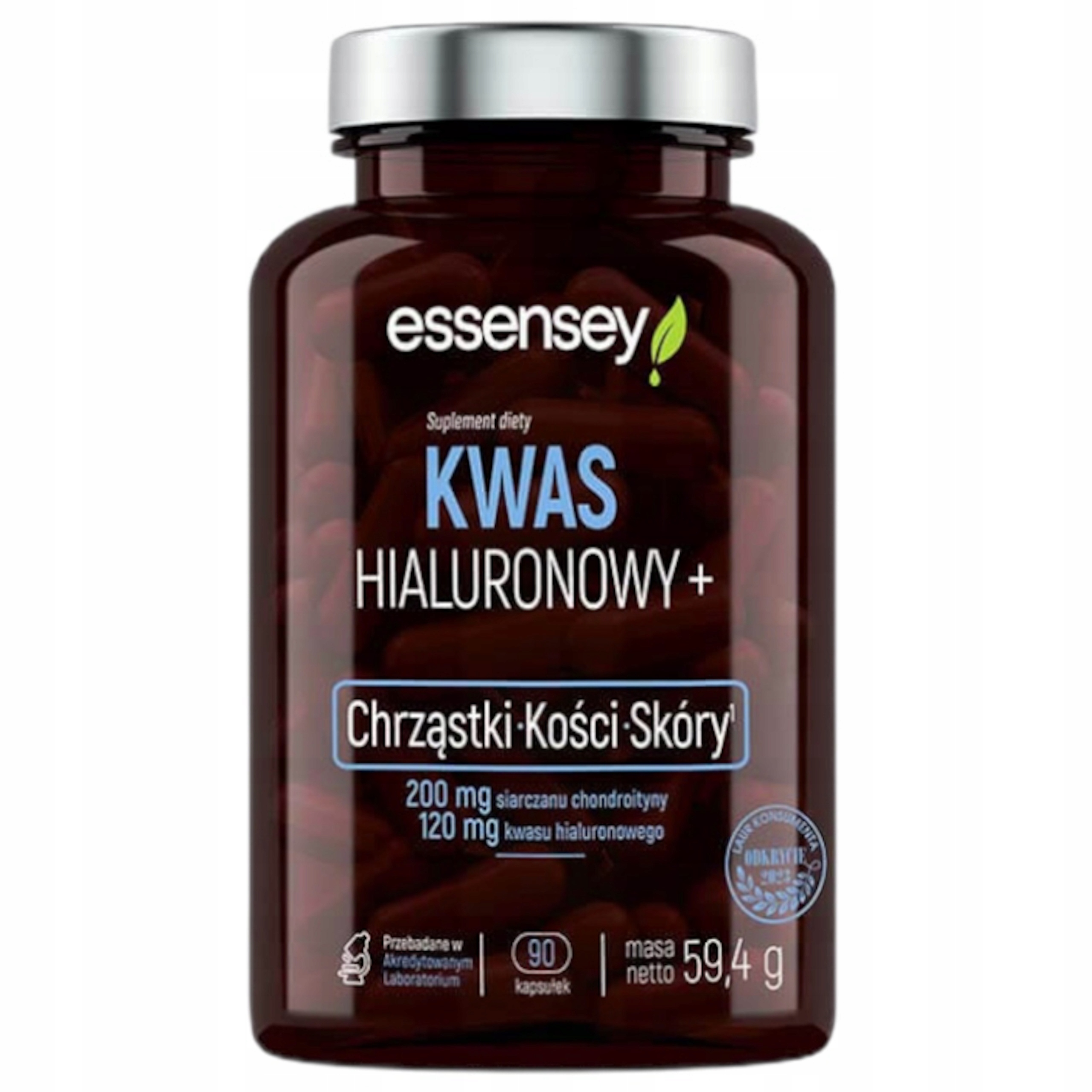 БАД ESSENSEY HYALURONIC ACID+ содержит гиалуроновую кислоту, витамин С, пролин и хондроитин. Витамин С помогает в правильной выработке коллагена, который поддерживает функционирование кожи и кровеносных сосудов [1]
