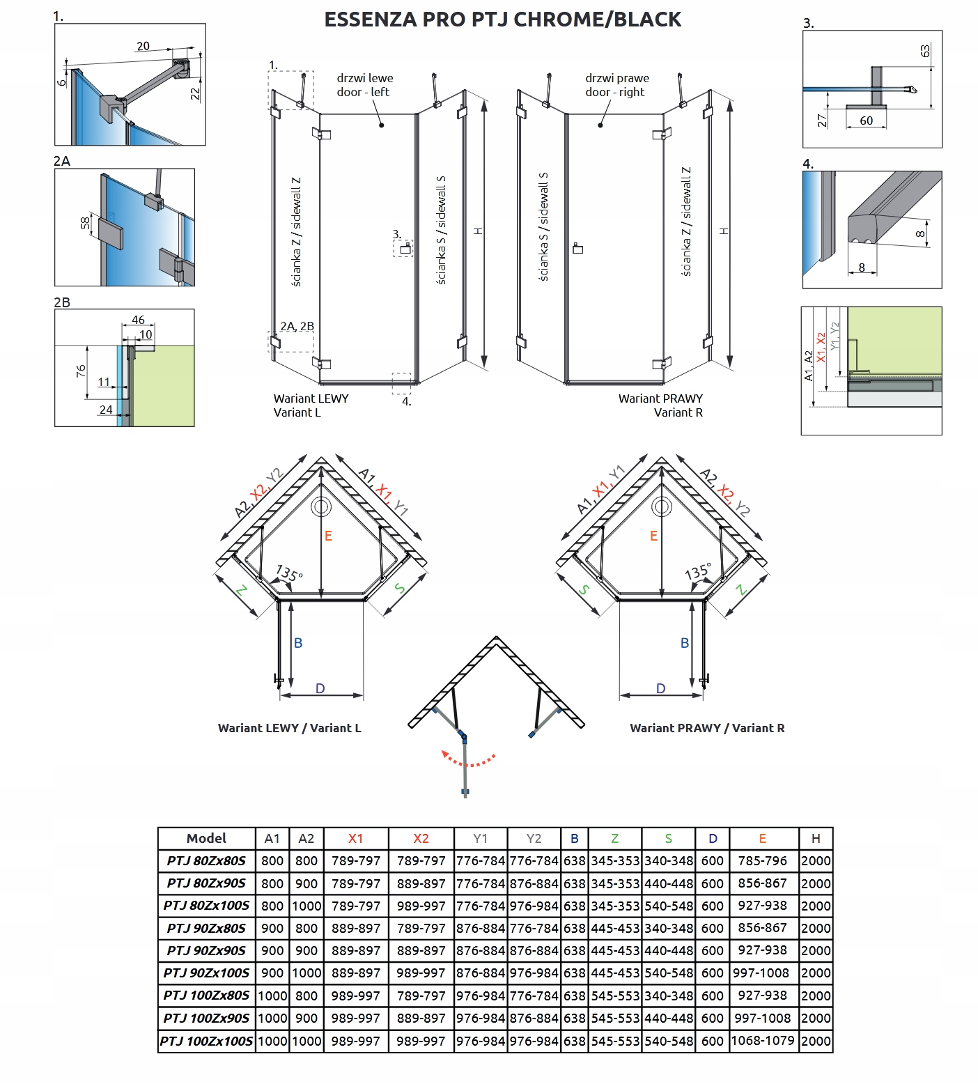 ................................................. ......... Essenza Pro PTJ 90x90x200 душевая кабина пятиугольная производства:........................... ....... .............