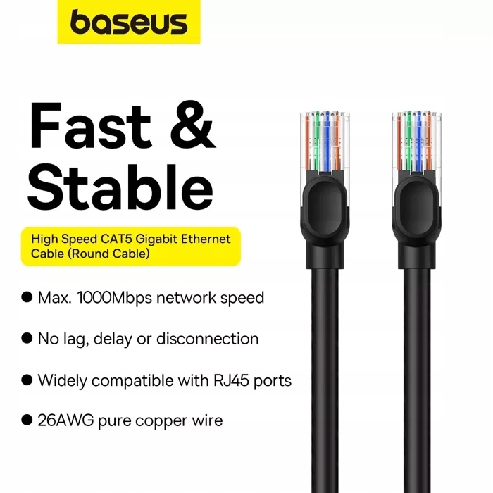 - Получить максимальную скорость передачи данных . Благодаря скорости 1000 Мбит/с, онлайн -работа и развлечения становятся проблемами и мгновенно. Разъем RJ-45 обеспечивает простое соединение со многими устройствами, от компьютеров до игровой консоли. Этот стандарт является гарантией надежности и скорости, необходимой в современном мире технологий. Создание чистого медного провода (26AWG) обеспечивает долгосрочную прочность и стабильность сигнала. : baseus