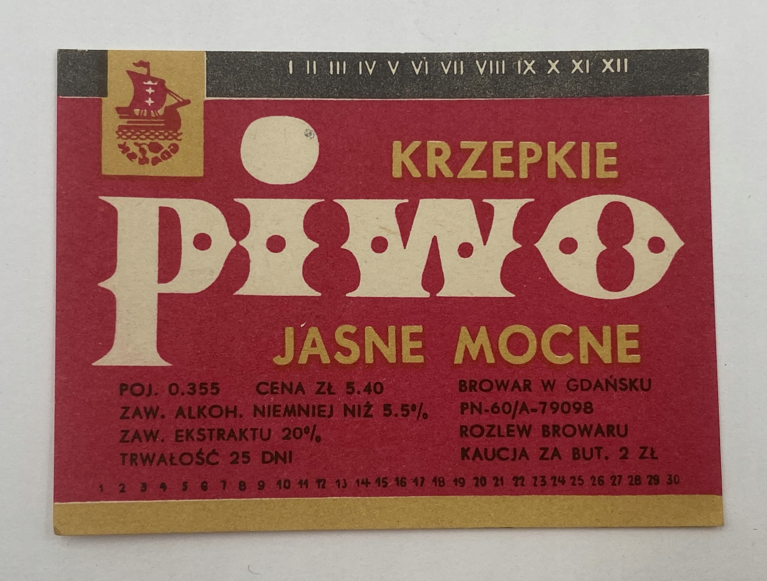 Пивная этикетка: крепкое, легкое, крепкое пиво. Пивоварня в Гданьске
