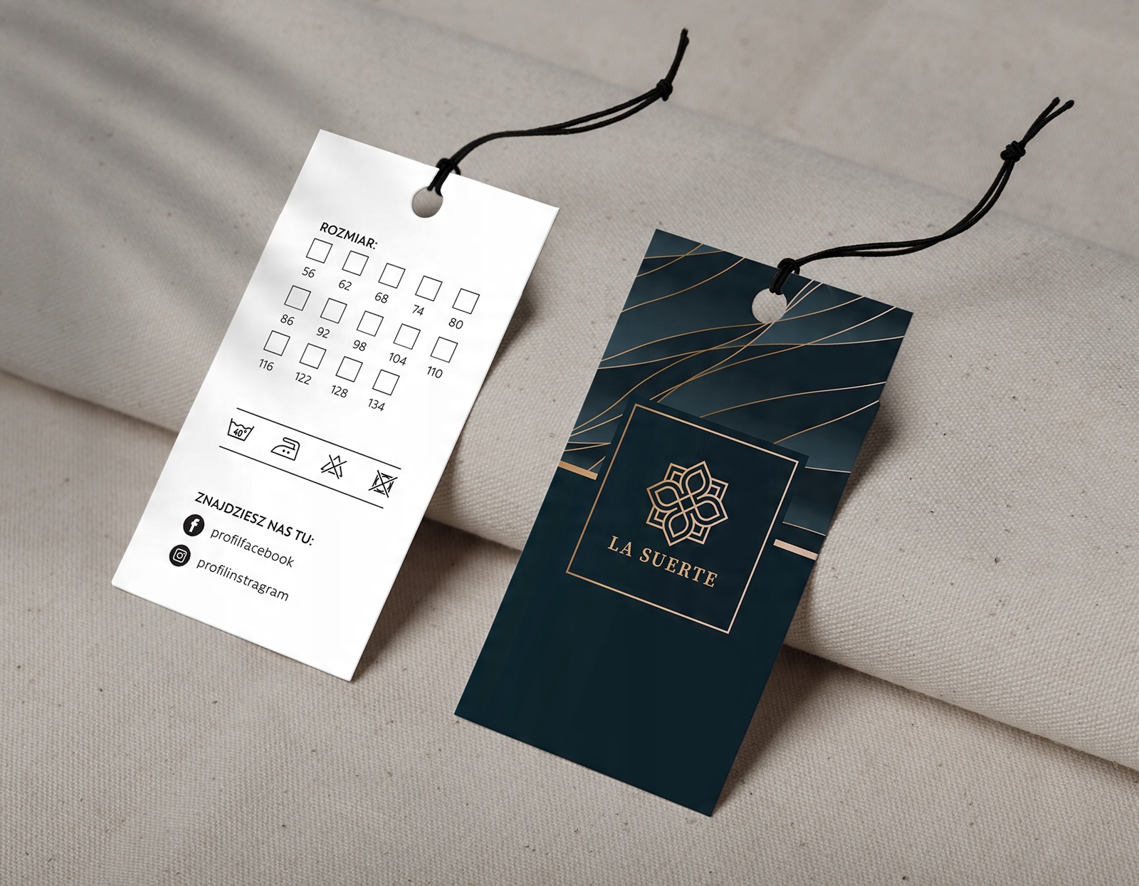 Нет, в готовые теги мы не добавляем строку. Из-за разных предпочтений - клиенты прикрепляют этикетки в зависимости от своих потребностей, например, на лески, веревки, ленты, ремешки и т. д. Возможностей много :)
