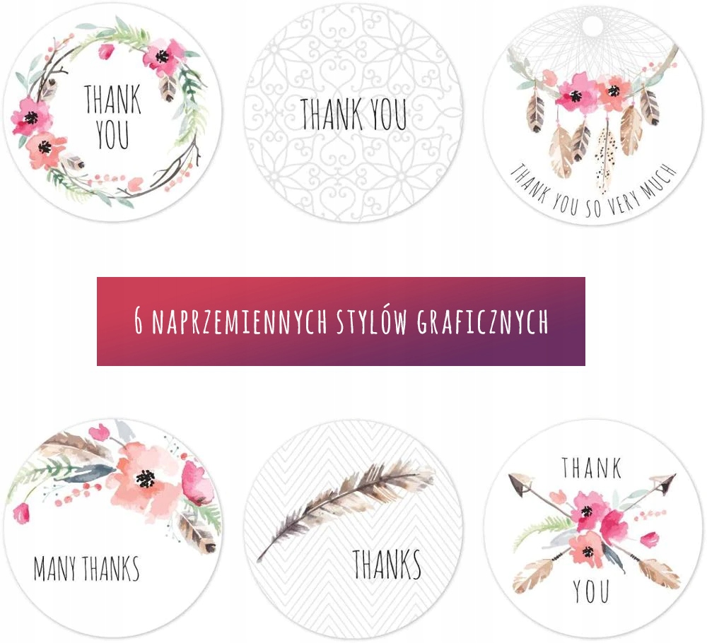Етикетки, наклейки ДЯКУЮ рожеві та пір'я 500 шт