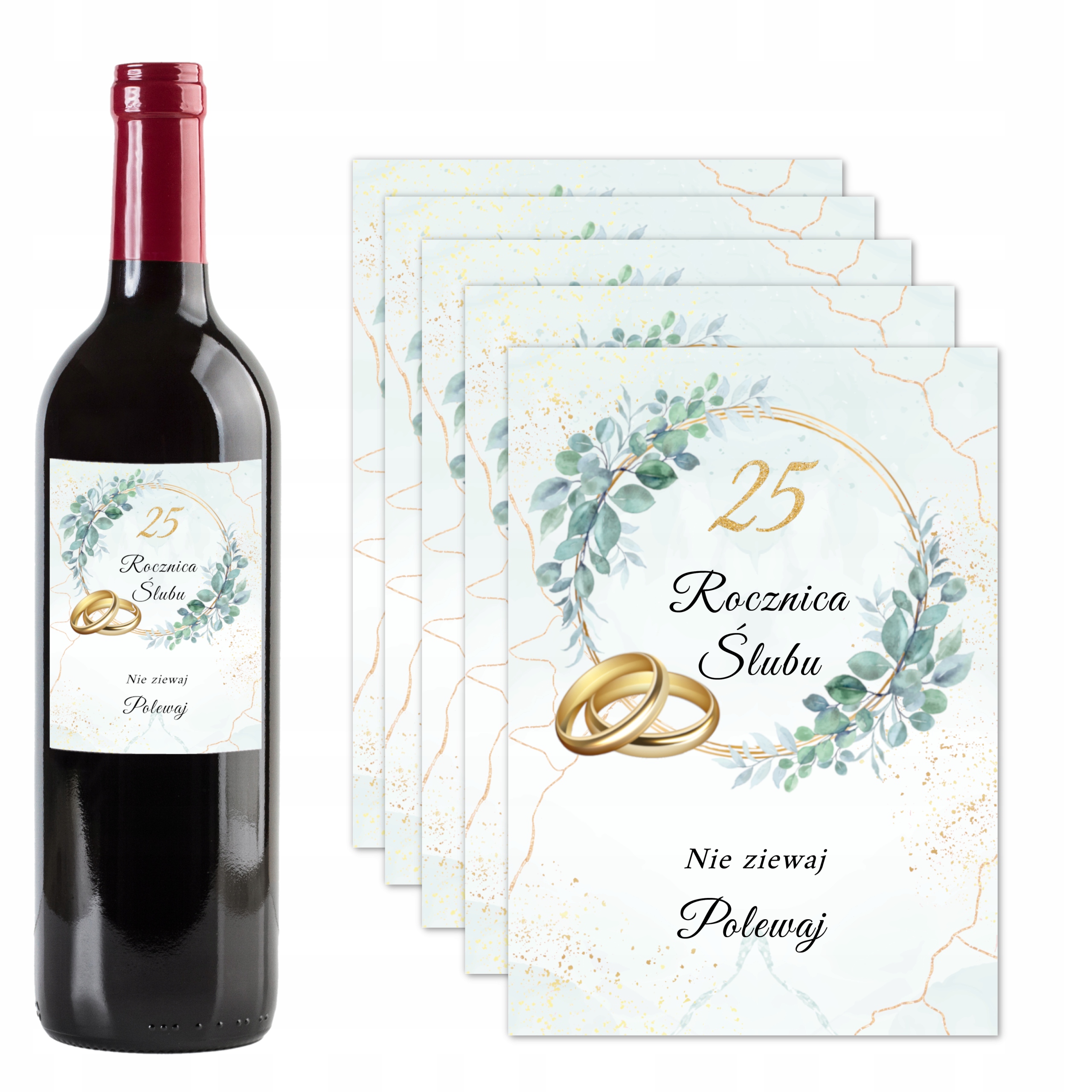 Наклейки на бутылку к 25-летию свадьбы - 5 шт.
