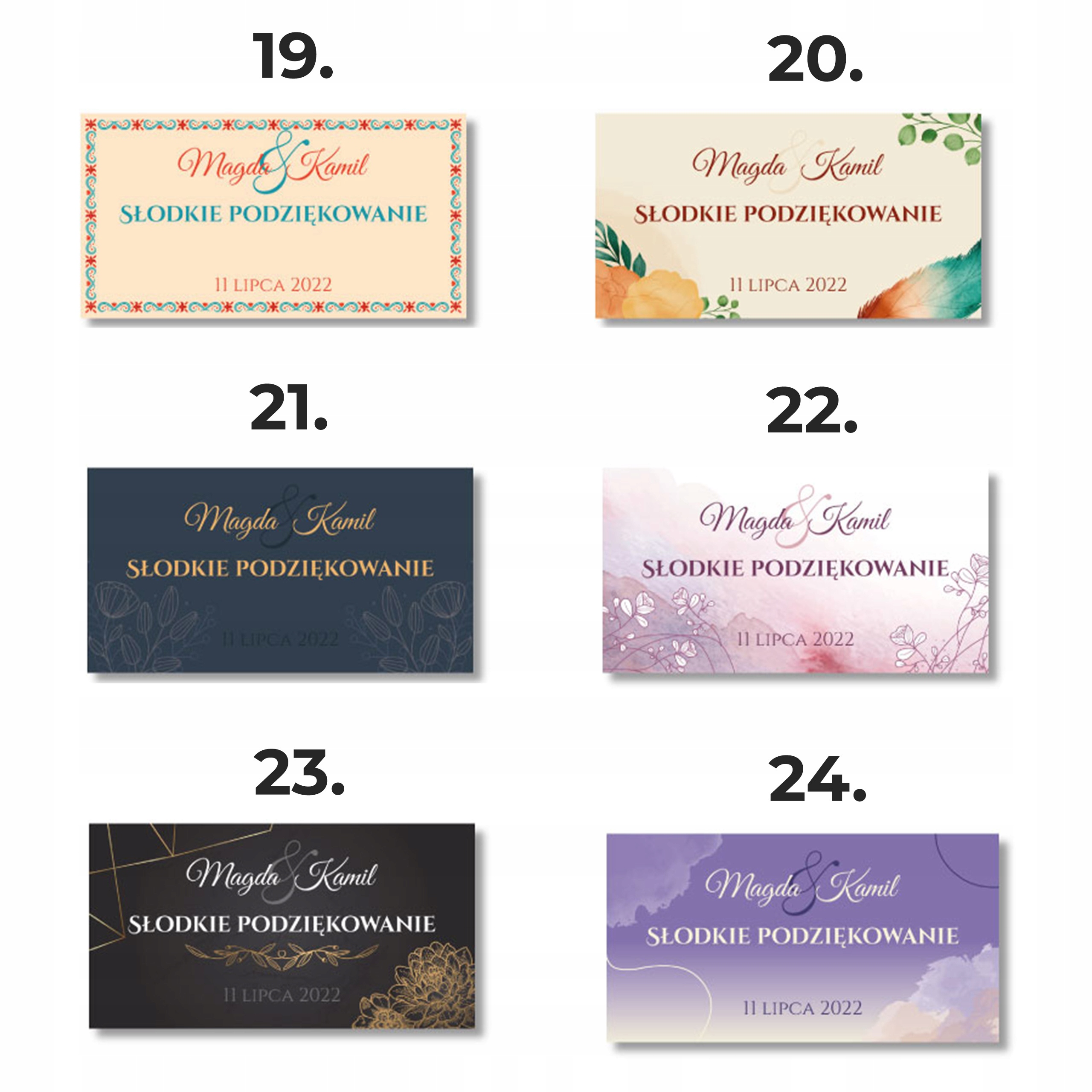 Наши наклейки на тесто, не только красиво украшайте подарок, но и делают его хорошим сувениром с церемонии. Каждая наклейка на тесто -это метка, которая является самодовольно. Он работает как на стандартных коробках, так и на тех, которые сделаны из более современного картона.