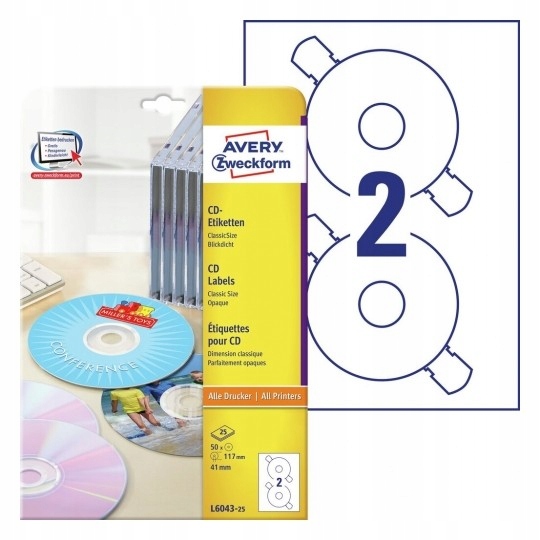 ЕТИКЕТКИ WHITE CD L6043-25 50 ШТ. AVERY